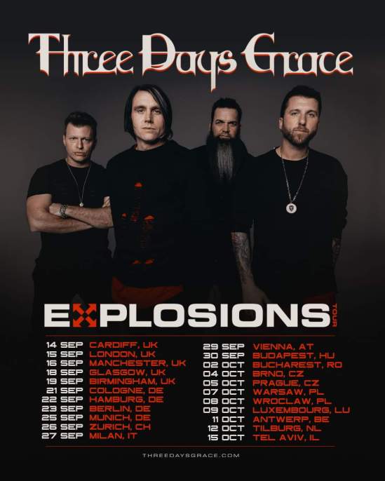 Three Days Grace have announced a headlining European/UK tour. The band will be touring in support of their new album “Explosions” (out May 6).