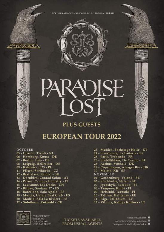 Paradise Lost have announced a headlining European tour. The trek will take place this fall.