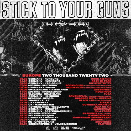 Stick To Your Guns have announced a European/UK tour. The band will be touring in support of their new album “Spectre,“ which is set to be released on July 29.