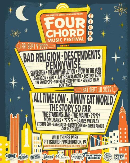 The lineup has been revealed for this year’s Four Chord Music Festival. The event will take place at Wild Things Park in Pittsburgh, PA on September 9-10 and it will feature the following: