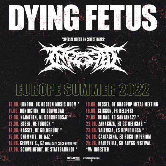 Dying Fetus have announced a June European/UK tour. Ingested will open on select dates.