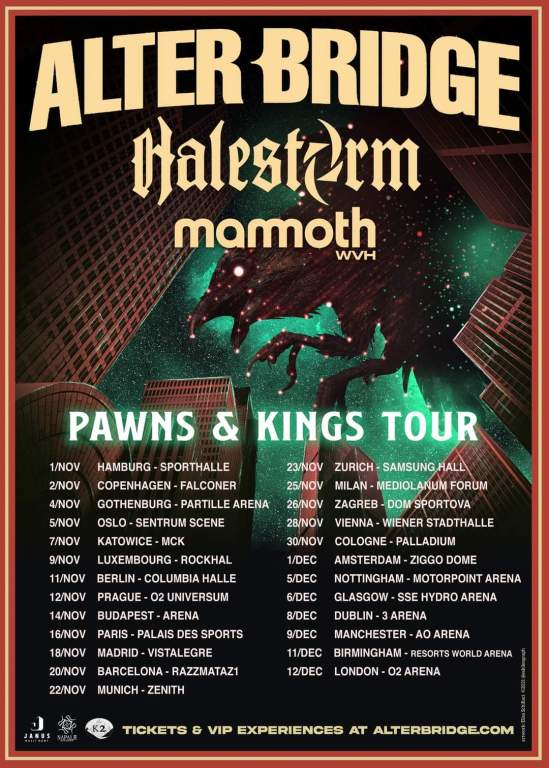 Alter Bridge have announced a headlining European/UK tour. Halestorm and Mammoth WVH will serve as support.
