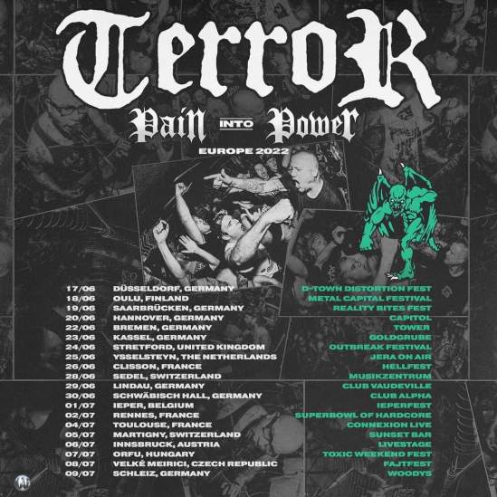Terror have announced a European/UK tour. The band will be touring in support of their new album “Pain Into Power,” which will be released on May 6.