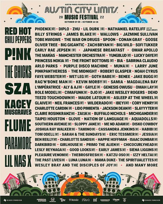 The lineup has been revealed for this year’s Austin City Limits Music Festival. The event will be held on October 7-9 and October 14-16 at Zilker Park in Austin, TX and it will feature several rock artists including: Red Hot Chili Peppers, Paramore, Yungblud, Manchester Orchestra, Taipei Houston, and Charlotte Sands. The full lineup can be found below: