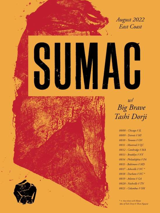 SUMAC have announced an East Coast tour with Big Brave and Tashi Dorji. Here’s the dates for that run: