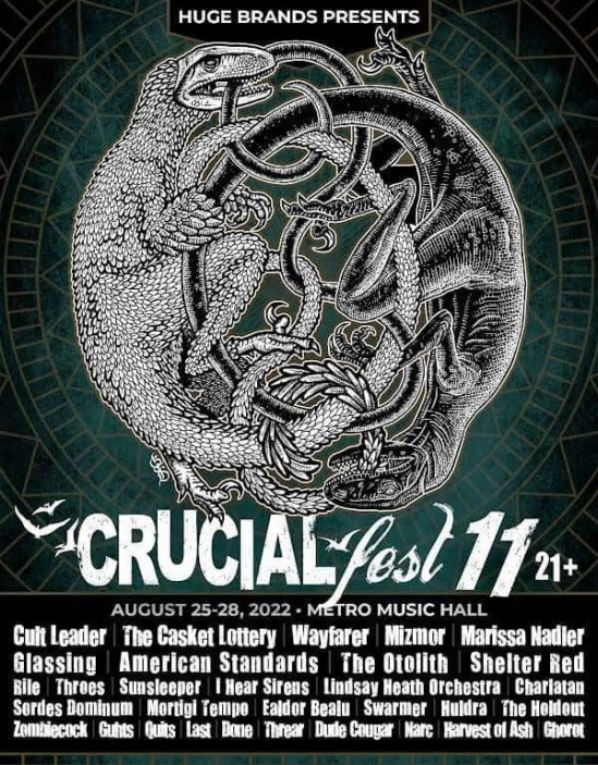 The lineup has been revealed for this year’s Crucialfest. The event will take place at the Metro Music Hall in Salt Lake City, UT on August 25-28 and it will feature the following: Cult Leader, The Casket Lottery, Wayfarer, Mizmor, Marissa Nadler, Glassing, American Standards, The Otolith, Shelter Red, Rile, Throes, Sunsleeper, I Hear Sirens, Linday Heath Orchestra, Charlatan, Sordes Dominum, Mortigi Tempo, Ealdor Bealu, Swarmer, Huldra, The Holdout, Zombiecock, Guhts, Quits, Last, Done, Threar, Dude Cougar, Narc, Harvest Of Ash, and Ghorot.