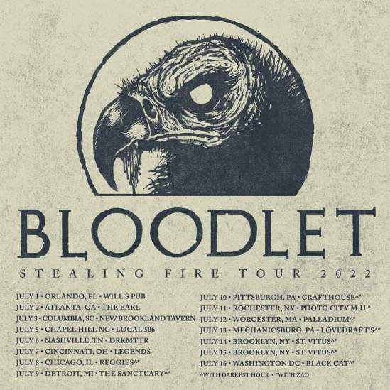 Bloodlet have announced a July U.S. tour. The trek will include the band’s previously announced dates with Darkest Hour and Zao and new headlining shows.