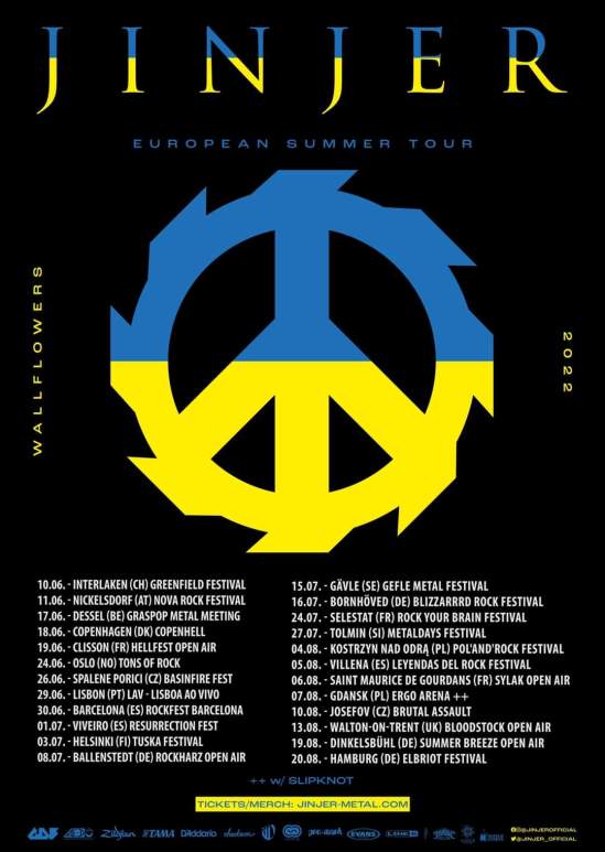 Jinjer have announced a summer European tour. The band will be touring as ambassadors for their homeland of Ukraine, which is currently subject to an unprovoked invasion by Russia. You can find the dates below and purchase a benefit shirt HERE.