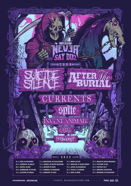 Suicide Silence and After The Burial will be co-headlining the Never Say Die! Tour in Europe. Currents, Spite, Invent Animate, Cabal, and Boundaries will open.