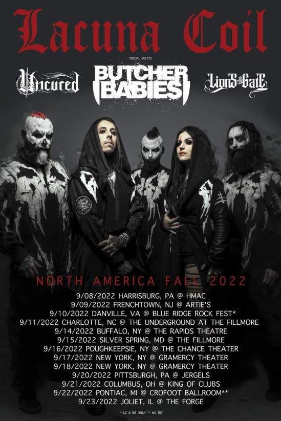 Lacuna Coil have announced a September U.S. tour with Butcher Babies, Uncured, and Lions At The Gate. Here’s the dates for that run: