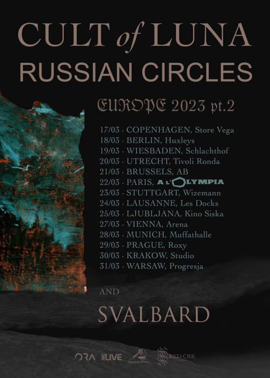 Cult Of Luna, Russian Circles, and Svalbard have announced a March 2023 European tour. Here’s the dates: