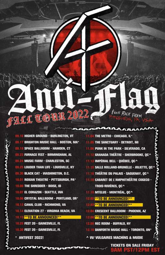 Anti-Flag have announced a fall North American tour. You can find the dates for that run below.