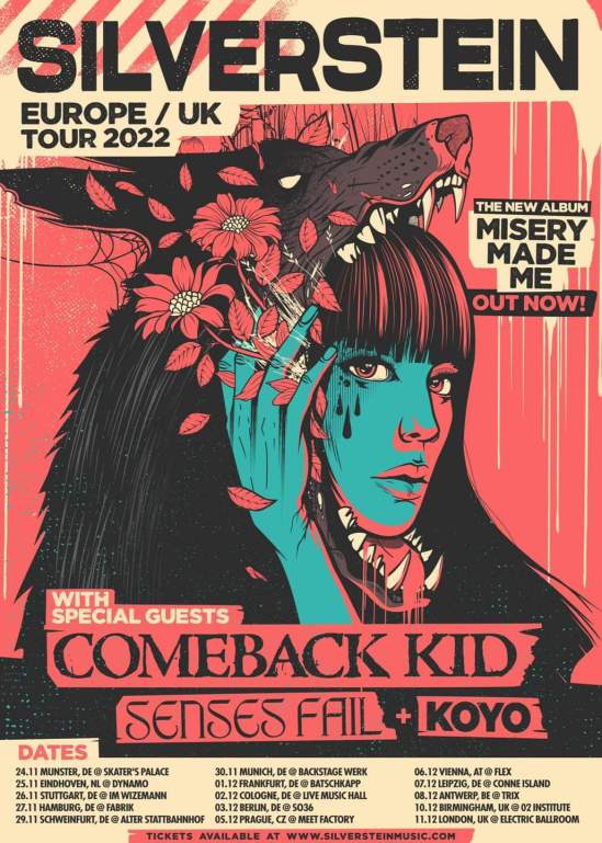 Silverstein have announced a European/UK tour with Comeback Kid, Senses Fail, and Koyo. Here’s the dates: