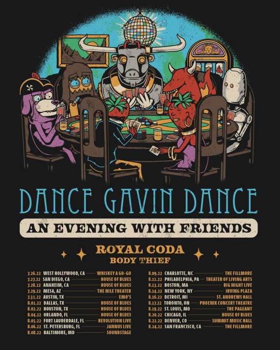 Dance Gavin Dance have announced a summer North American tour with Royal Coda and Body Thief. The trek will be their first without singer Tilian Pearson, who stepped away from the band due to sexual assault allegations. Guitarist Andrew Wells will be handling clean vocals, while Marc Okubo (Veil Of Maya) will be handling guitar duties. The band’s former frontman Kurt Travis (Royal Coda) will also join them onstage for select songs.