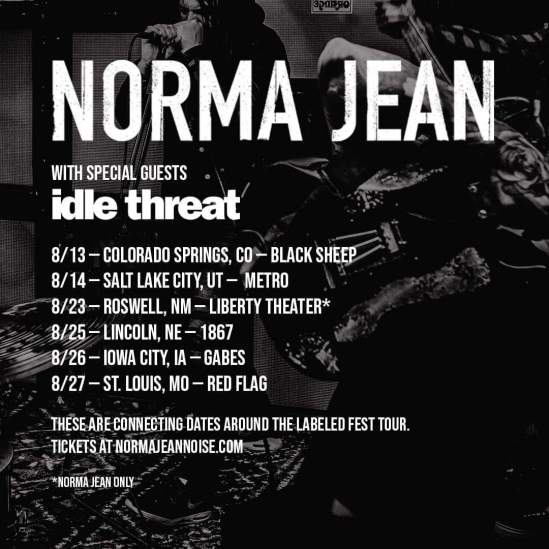 On July 8, Norma Jean will be filming a music video for one of the songs off their new album “Deathrattle Sing For Me” (out August 12) in Atlanta, GA. Notably, the group are inviting fans to star as extras in the clip. You can find more information regarding that HERE. In other news, the band have also announced some August shows with Idle Threat: