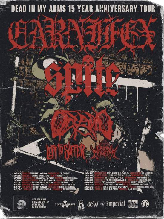 Carnifex will be celebrating the 15th anniversary of “Dead In My Arms” by performing it in full on a fall headlining tour. Spite, Oceano, Left To Suffer, and Crown Magnetar will open.