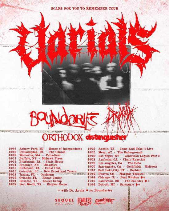 Varials have announced a fall headlining tour with Boundaries, Orthodox, and Distinguisher. Dr. Acula will also perform on select dates.