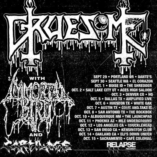 Gruesome have announced a headlining U.S. tour. Immortal Bird and Cartilage will open.