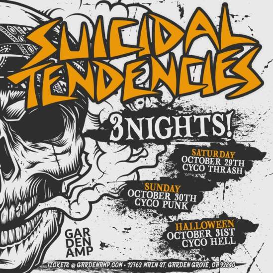 Suicidal Tendencies will be celebrating Halloween with three concerts at Garden Amphitheatre in Garden Grove, CA on October 29-31. The band shared a rundown of each show: