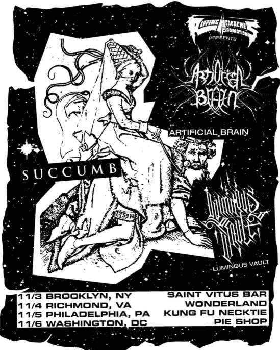 Artificial Brain have announced some November shows with Succumb and Luminous Vault. Here’s the dates: