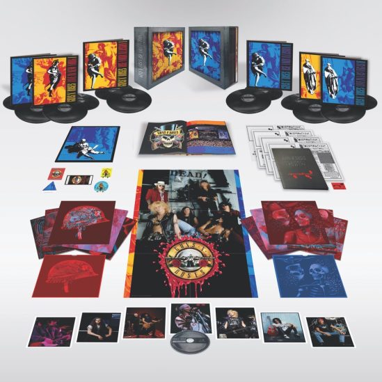 GUNS N’ ROSES – USE YOUR ILLUSION I & II Super Deluxe Seven-CD + Blu-ray and Super Deluxe Twelve-LP + Blu-ray box sets feature a whopping 97 songs, 63 of which are unreleased audio and video tracks. The original studio albums Use Your Illusion I and Use Your Illusion II are both remastered for the first-time from high-resolution 96kHz 24-bit transfers from the original stereo 1/2-inch analog master tapes.