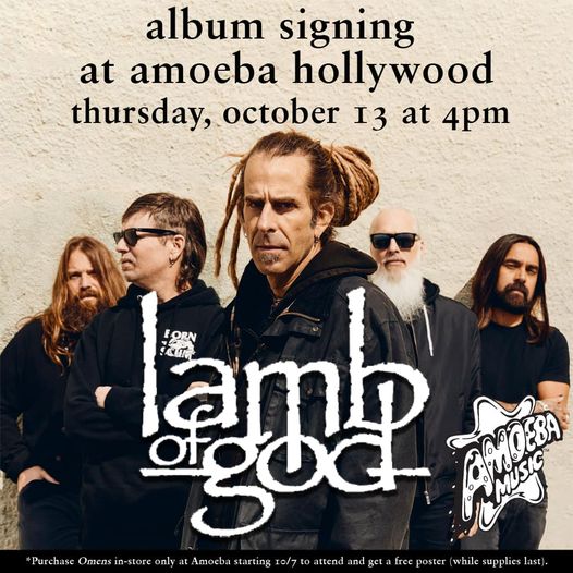 Lamb Of God will be signing copies of their new album “Omens” (out October 7) at Amoeba Music in Hollywood, CA on October 13. The band said the following about that: