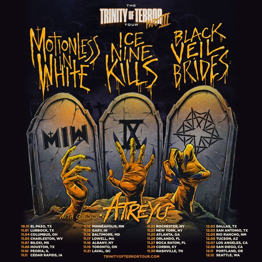Motionless In White, Ice Nine Kills, and Black Veil Brides have added more dates to the third leg of their “Trinity Of Terror” tour. Atreyu will open.