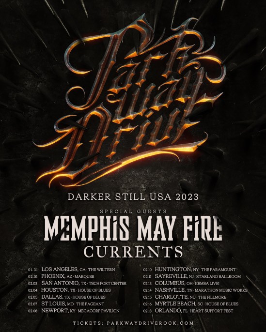 Parkway Drive have announced a headlining U.S. tour. Memphis May Fire and Currents will open.