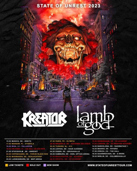 Kreator and Lamb Of God have postponed their European/UK tour once again “due to unforeseen circumstances.” The trek is now scheduled for 2023.
