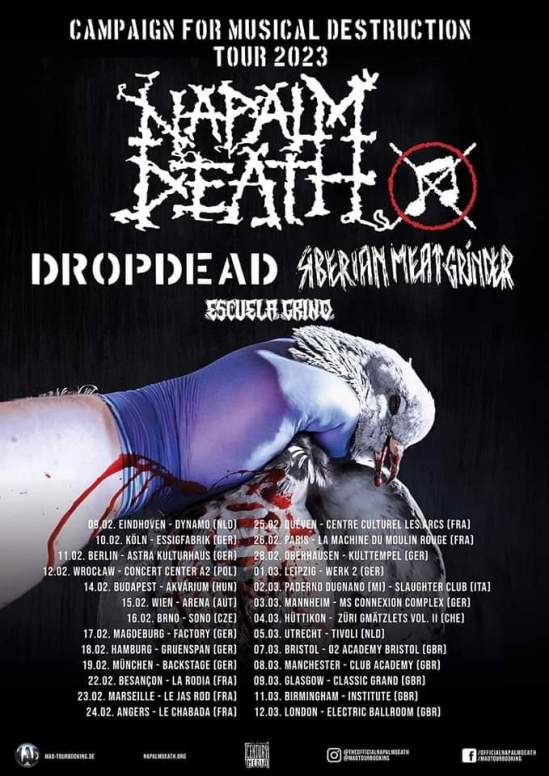 Escuela Grind have been added to Napalm Death, Dropdead, and Siberian Meat Grinder’s upcoming European/UK tour. You can find the dates for that run below.