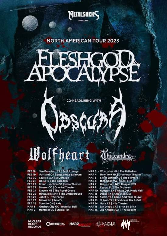 Fleshgod Apocalypse and Obscura have announced a co-headlining North American tour. Wolfheart and Thulcandra will serve as support.