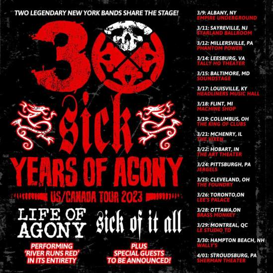 Life Of Agony and Sick Of It All will be hitting the road on the “30 Sick Years Of Agony” tour next year. The trek will find