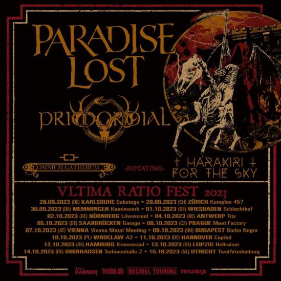Paradise Lost, Primordial, Omnium Gatherum, and Harakiri For The Sky will be hitting the road on the “Ultimate Ratio Fest” tour in Europe this fall. Tickets will be available on January 20 at 12:00pm CET.