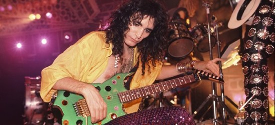 I used “Swiss Cheese” in the original Yankee Rose video while I was with David Lee Roth, and stretched it out in rehearsals & was planning on touring with it, but this guitar, along with 3 others, was stolen in Pasadena CA at Perkins Palace during rehearsals for the Eat Em and Smile tour. It is officially the first guitar to receive a “monkey” grip” handle, and the first one Joe made with a handle at my request.