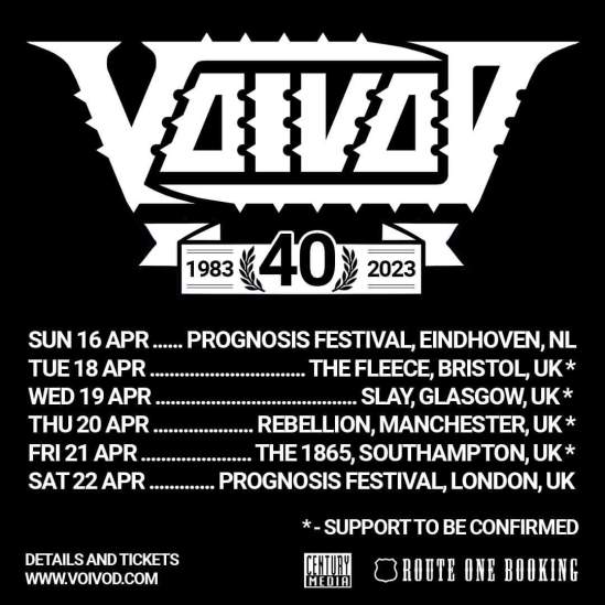 Voivod will be celebrating their 40th anniversary with some shows in the UK and Netherlands this April. Here’s the dates: