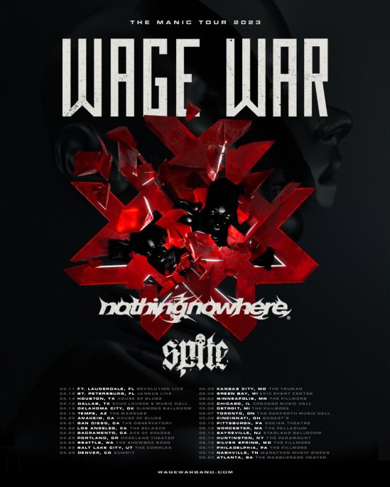 Wage War have announced a headlining North American tour. nothing,nowhere. and Spite will open.