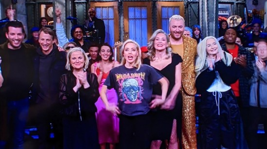 It looks like Aubrey Plaza (“The White Lotus,” “Parks And Recreation,” “Little Demon, ” etc.) may be a fan of thrash metal. While hosting the latest episode of “Saturday Night Live,” the actress rocked a Megadeth shirt during the goodbye segment. You can see a photo and footage of that below. Notably, Daily Mail previously shared a photo of Plaza wearing the same shirt last year.