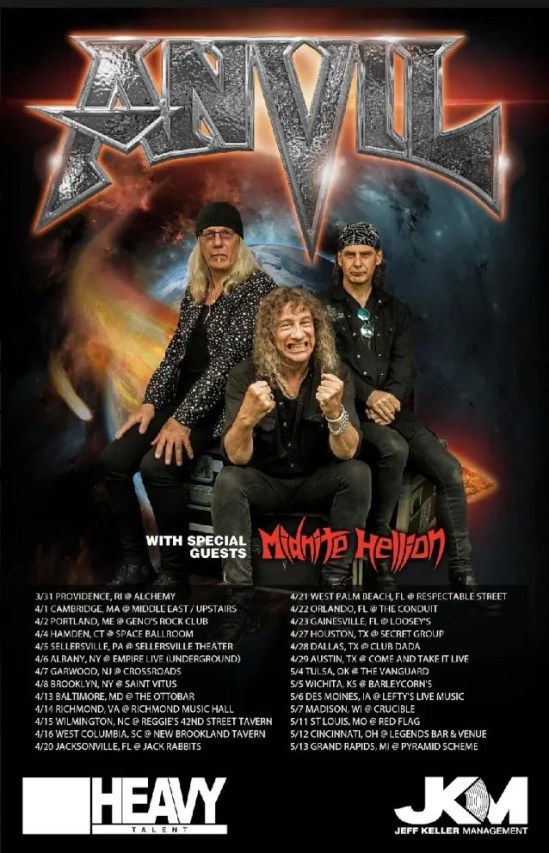 Anvil have announced a headlining U.S. tour. Midnite Hellion will serve as support.
