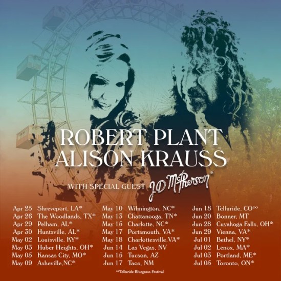 Robert Plant and Alison Krauss have announced a U.S. tour in support of their latest album “Raise The Roof.” JD McPherson will open.