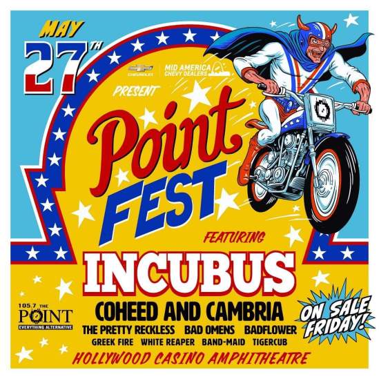 The lineup has been revealed for this year’s edition of 105.7 The Point’s Point Fest. The event will take place at the Hollywood Casino Amphitheatre in St. Louis, MO on May 27 and it will feature the following: Incubus, Coheed And Cambria, The Pretty Reckless, Bad Omens, Badflower, Greek Fire, White Reaper, Band-Maid, and Tigercub.