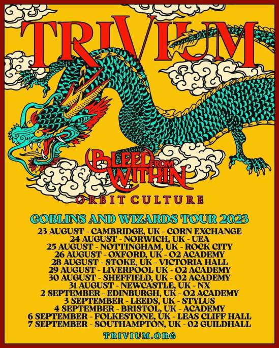 Trivium have announced a UK tour with Bleed From Within and Orbit Culture. Here’s the dates: