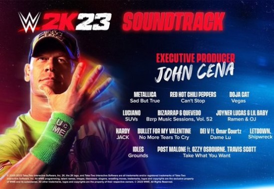 The soundtrack has been revealed for the upcoming video game “WWE 2K23.” The game will be released on March 14 and it will feature the following songs: