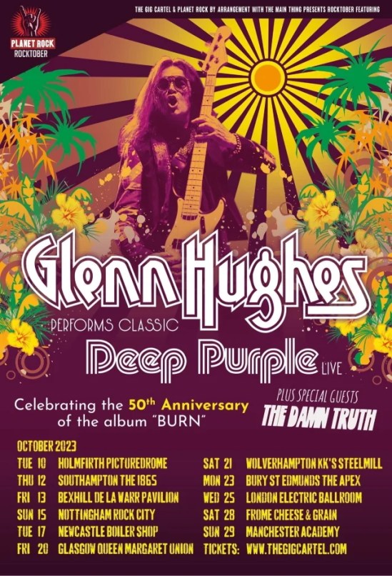 Glenn Hughes will be celebrating the 50th anniversary of Deep Purple’s “Burn” on an October UK tour. The Damn Truth will serve as support.