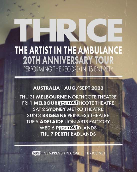 Thrice have added two more dates to the Australian leg of their “The Artist In The Ambulance” 20th anniversary tour. Here’s their updated schedule: