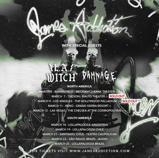 Jane’s Addiction have revealed the openers for their March West Coast shows. They include L.A. Witch and Damnage.