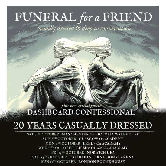 Funeral For A Friend will be celebrating the 20th anniversary of “Casually Dressed & Deep In Conversation” on an October UK tour. Dashboard Confessional will open. Here’s the dates: