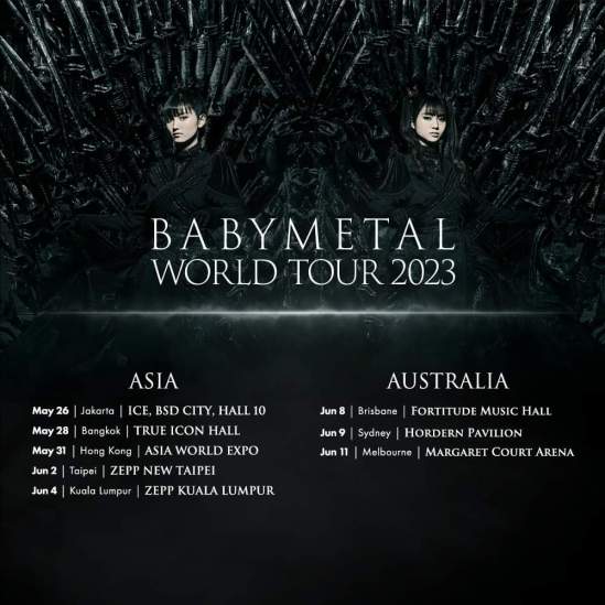 BABYMETAL have announced an Asian/Australian tour in support of their new album “The Other One” (out March 24). Here’s the dates for that run: