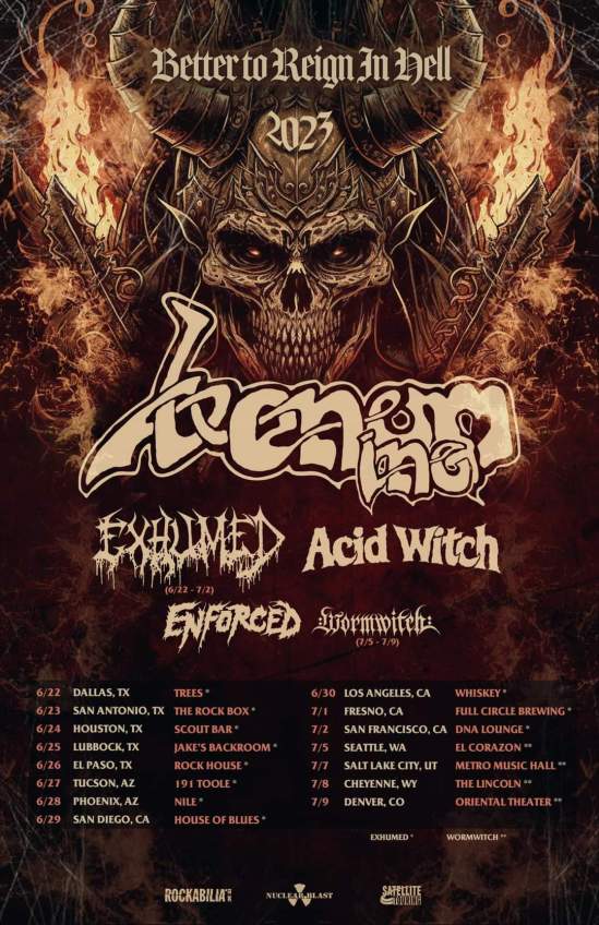 Venom Inc. have announced a summer U.S. tour with Acid Witch and Enforced. Exhumed and Wormwitch will also perform on select dates.
