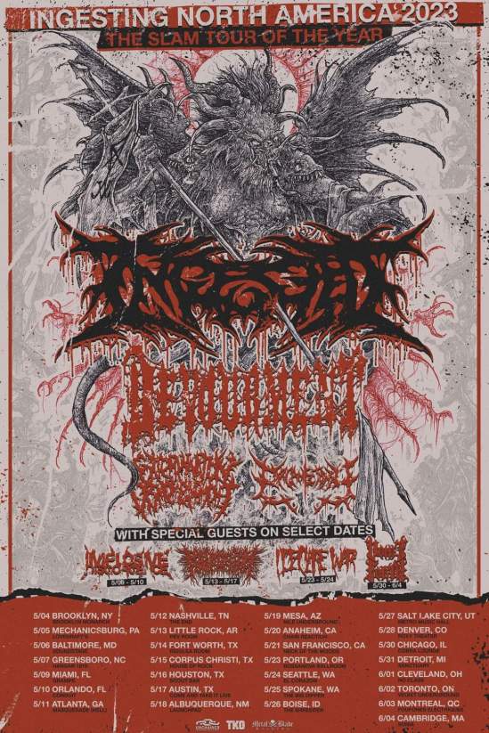 Vomit Forth have been added to select dates of Ingested, Devourment, Extermination Dismemberment, and Organechtomy’s upcoming tour. That trek will take place this spring and it will also feature Implosive Disgorgence, PeelingFlesh, and I Declare War on select dates.