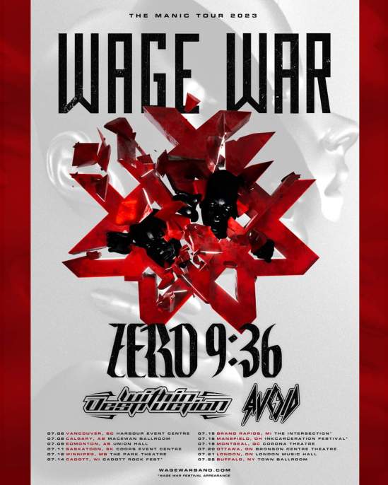 Wage War have announced a North American tour with Zero 9:36, Within Destruction, and Avoid. Here’s the dates: